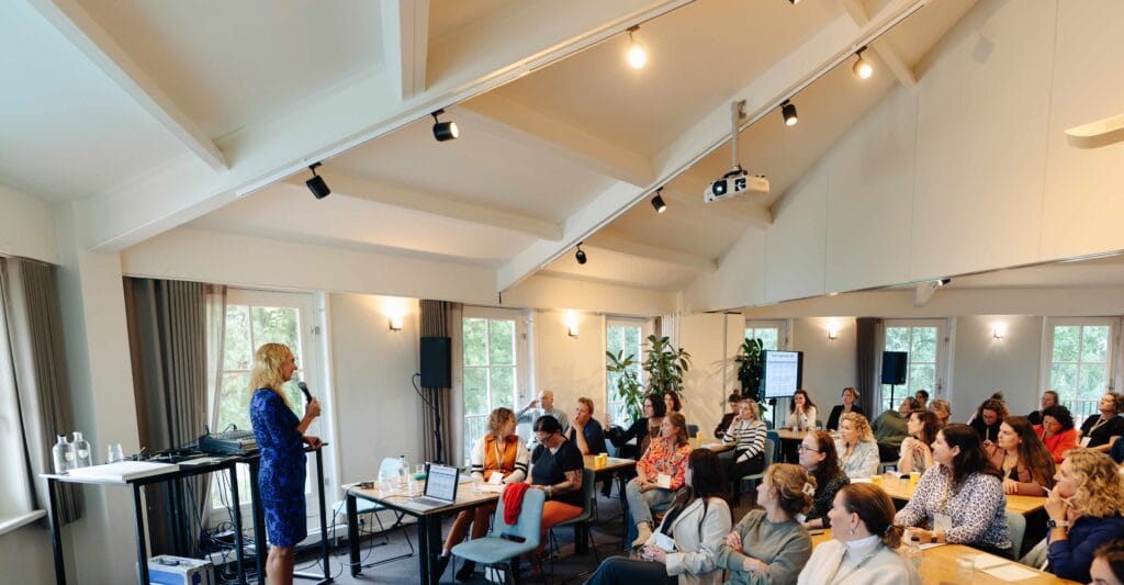First the workshop where about 60 L&D professionals learned more about why it is hard to take a strategic position as a learning department in an organization and what the characteristics of a good learning professional is. The audience worked on a Personal Branding Canvas in the workshop.