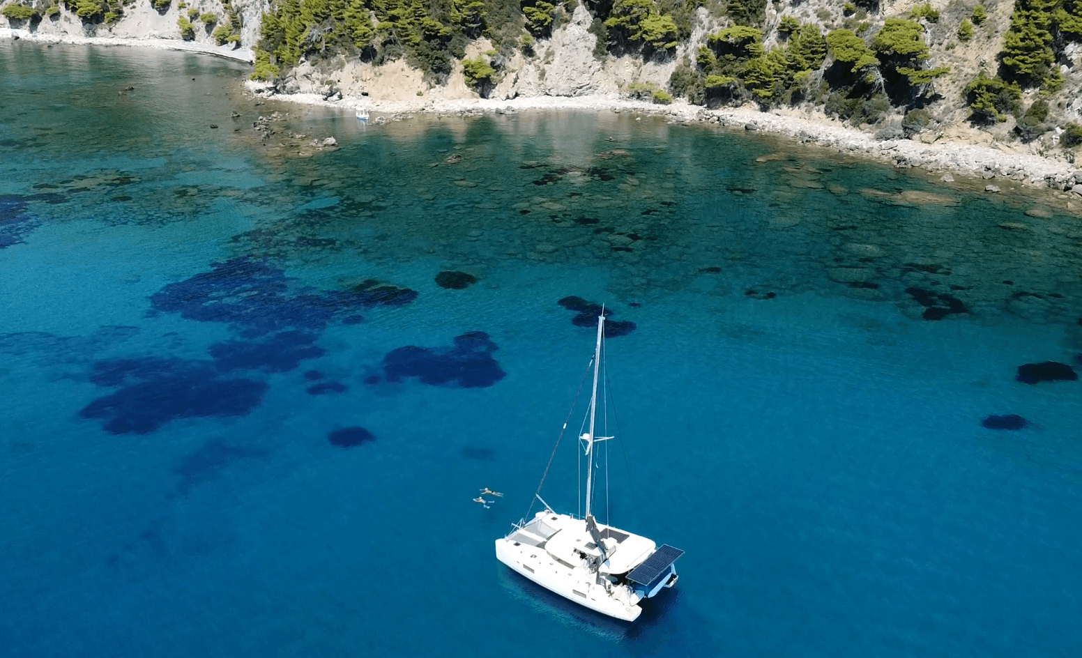 The next day, after the dinner, we sailed a little more towards the south of Corfu. We stopped at Paralia Issos, it is one of the largest sandy beaches in Corfu, where we anchored the catamaran.