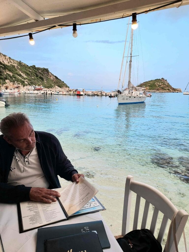 And we regularly allow ourselves to be tempted to eat out, especially when the chairs of a restaurant are invitingly set up on the beach with lights hanging above them. Then we happily leave our catamaran to see what delicious food they serve 😉. You can still sit outside reasonably well — with a light jacket — and out of the wind it’s perfectly comfortable.