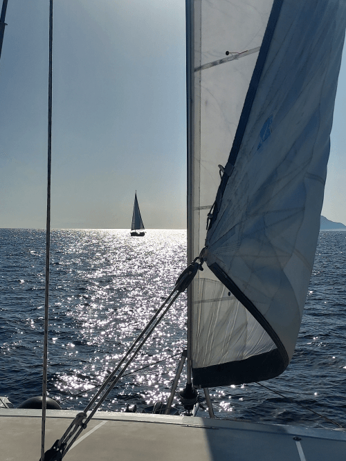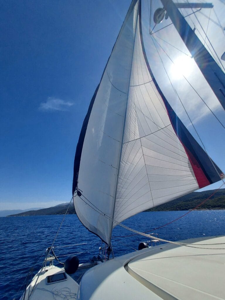 The weather in Greece was still good, with both sunshine and wind, so the sails went up regularly. We chose the route along the southern shore of the Gulf of Corinth, because there were still beautiful and sheltered places to see along the way.
