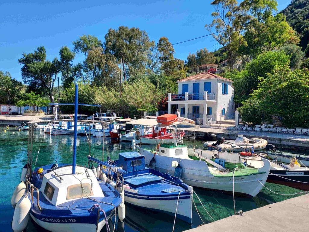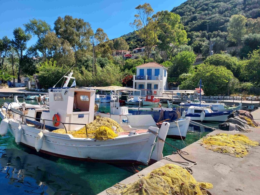 Apart from places such as Delphi, Corinth (city) or Galaxidi, there are not many big settlements along the Gulf of Corinth. Typically, you find small villages on the coast, each with a small harbour. Sometimes we shared the harbour with fishermen, who set off with their colourful boats late in the afternoon and then return in the dark at night. We always pay close attention to where we dock along the quay — if there are stacks of nets, it means that this spot belongs to a fisherman (who may return from his fishing trip). We remain amazed at how active and thriving the fishing industry still is here. This is of course partly due to the many tourists and restaurants, but we also regularly see people fishing along the shore as a hobby.