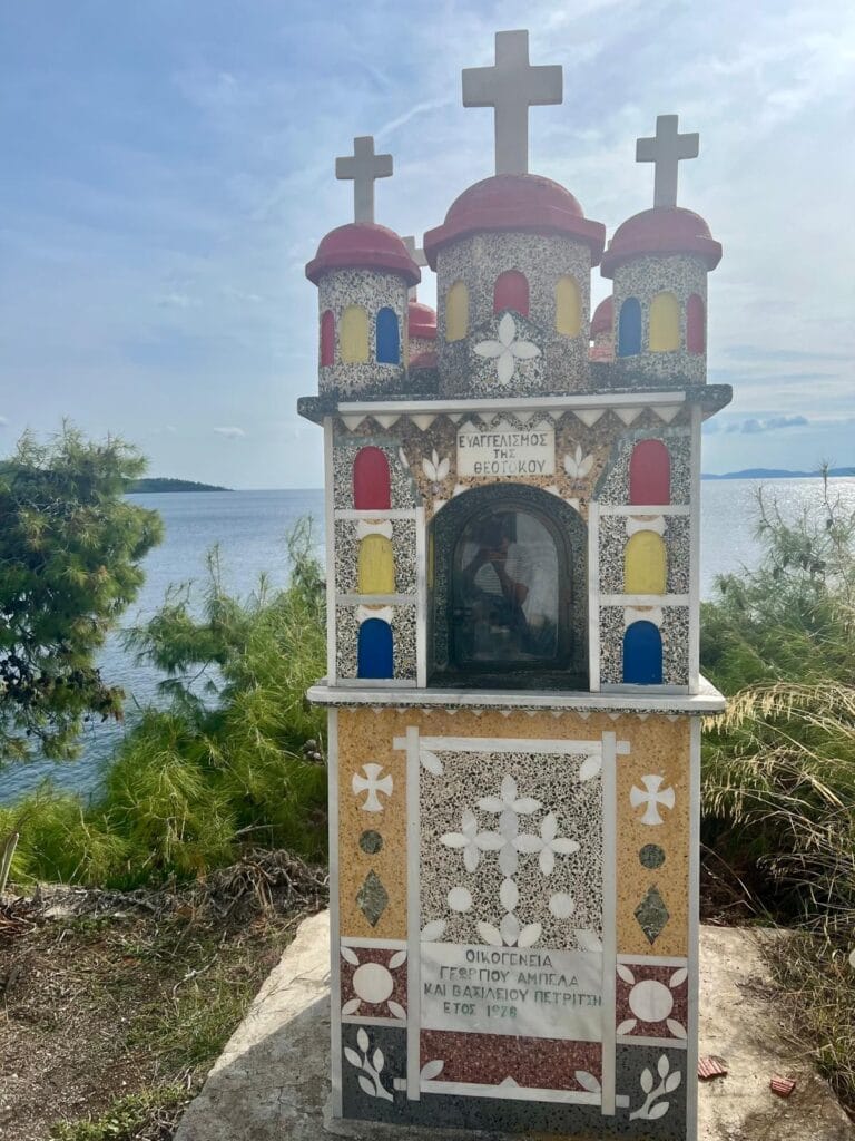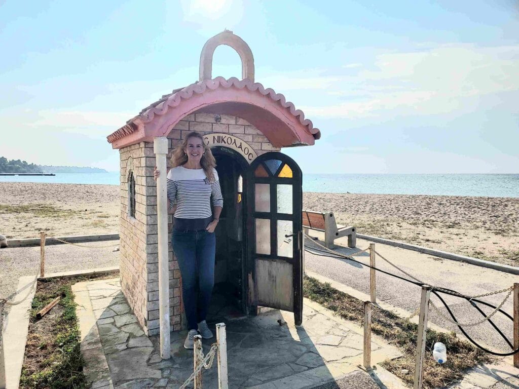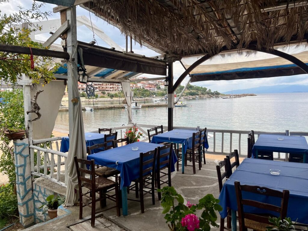 You immediately notice that this part of Greece is less touristy. Nea Kallikrateia, for example, only has a fishing harbor, where people looked somewhat surprised when the catamaran sailed in—but we were simply allowed to berth along the quay. Of course, there were plenty of cats and always little churches nearby. It’s a pleasant coastal town with a wide, long promenade, good facilities, and a relaxed atmosphere. The name “Nea” (new) refers to Greek refugees from Asia Minor who settled here in the early 20th century.