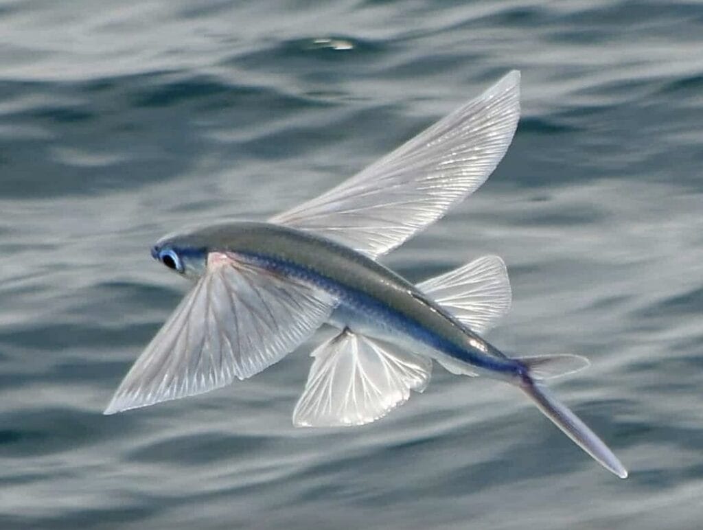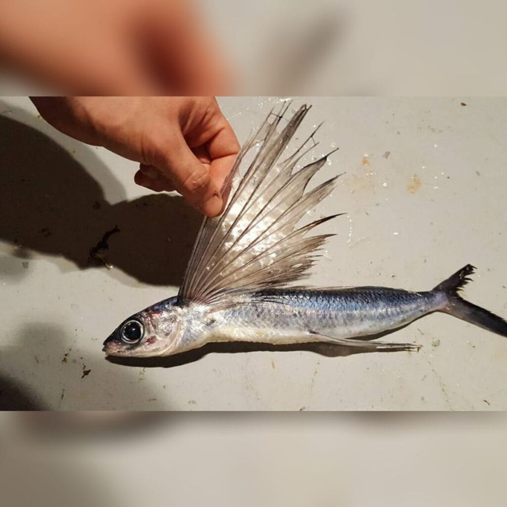 Along the way, we regularly encountered flying fish. What a fascinating phenomenon! These fish are about 15 cm long, have silvery scales, and their front fins are elongated and function like wings, allowing them to glide above the water. I read more about them: underwater they can reach speeds of around 60 km/h; with a powerful flick of their tail, they launch themselves out of the water and can glide for up to about 50 seconds. We often saw them shimmering in the sunlight! Distances of 50 to even 200 meters are possible. It’s a form of escape behavior—they do this when chased by predators such as tuna or mackerel.