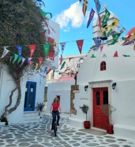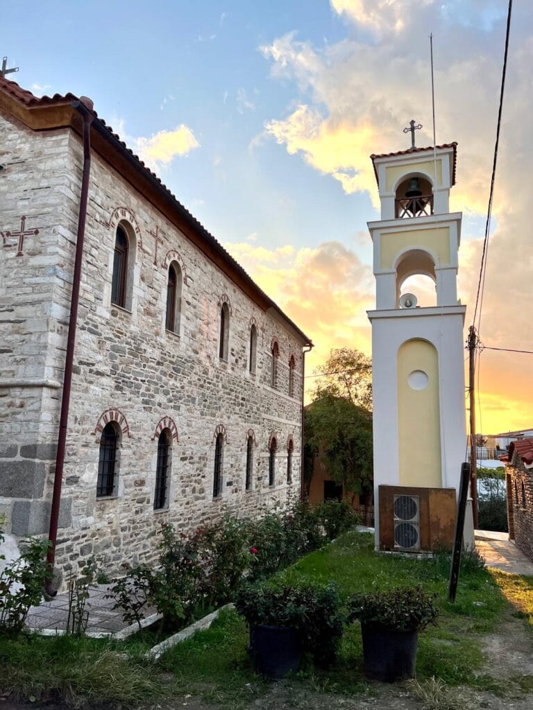 What immediately catches the eye is the 14th-century Byzantine tower, once part of a monastery’s defenses.