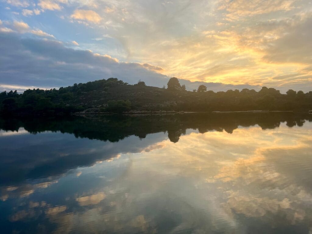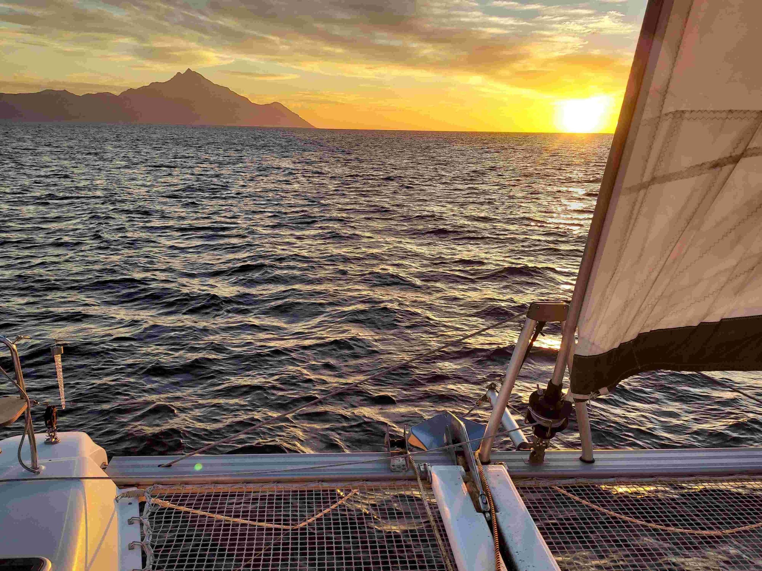 We arrived at the southernmost tip of the first peninsula. The sun was slowly setting, so we settled in for the traditional “anchor beer” 😉. It’s our custom to end the day with an evaluation, some chips, and a drink—while enjoying the beautiful sunset.