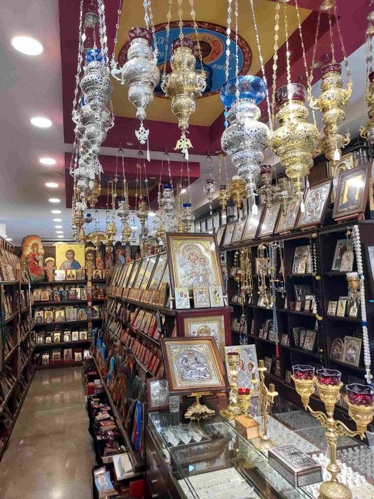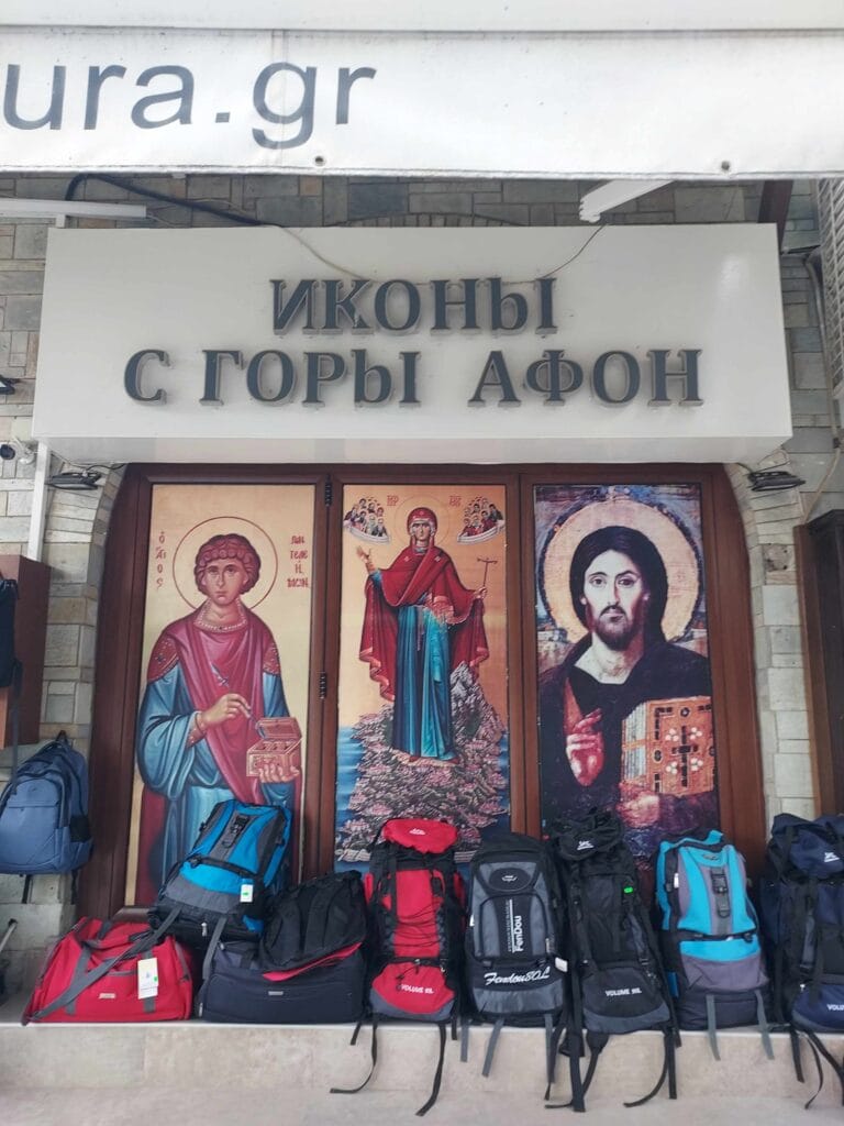 Because many monks arrive here or prepare for a stay in one of the monasteries on Mount Athos, you see many religious shops.