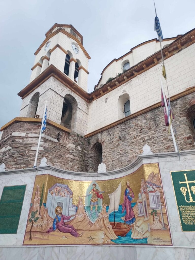 The monastery of Agios Nikolaos turned out to be a dependency of the holy monasteries on Mount Athos! The friendly monk at the entrance pointed this out to us, gesturing toward Mount Athos, which we could indeed see in the distance. That was three weeks after we had been there ourselves, but the mountain remains an important reference point for the entire region.