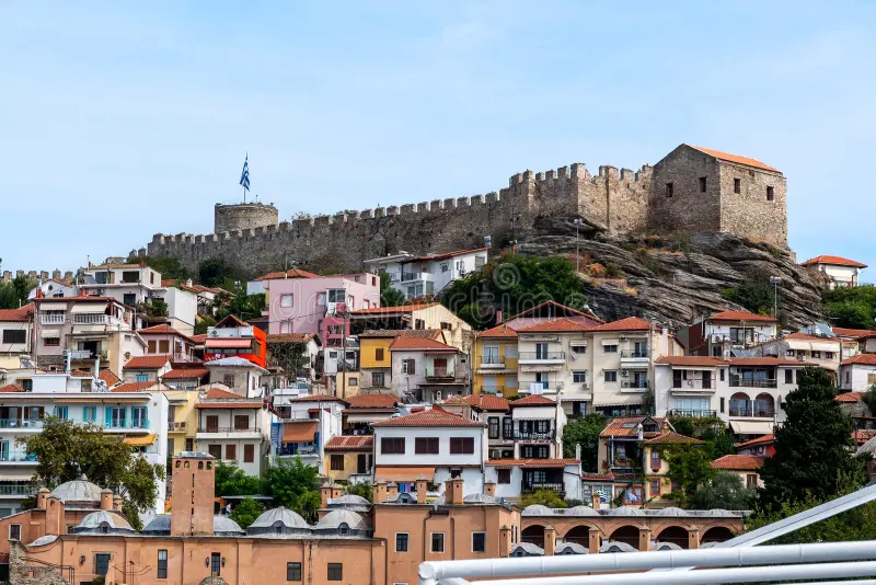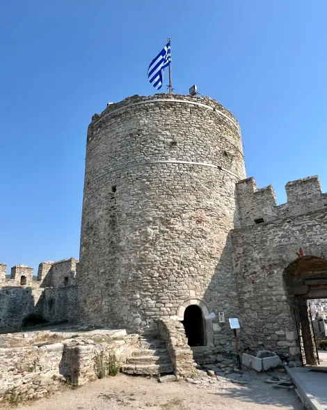 The fortress is also impressive to see. We walked to the top of the old town, where the fortress stands proudly—also known as the Acropolis of Kavala. The largest part was built in the first quarter of the 15th century AD, when Kavala was still called Christoupolis. It helped defend the city against various groups, such as the Ottomans.
