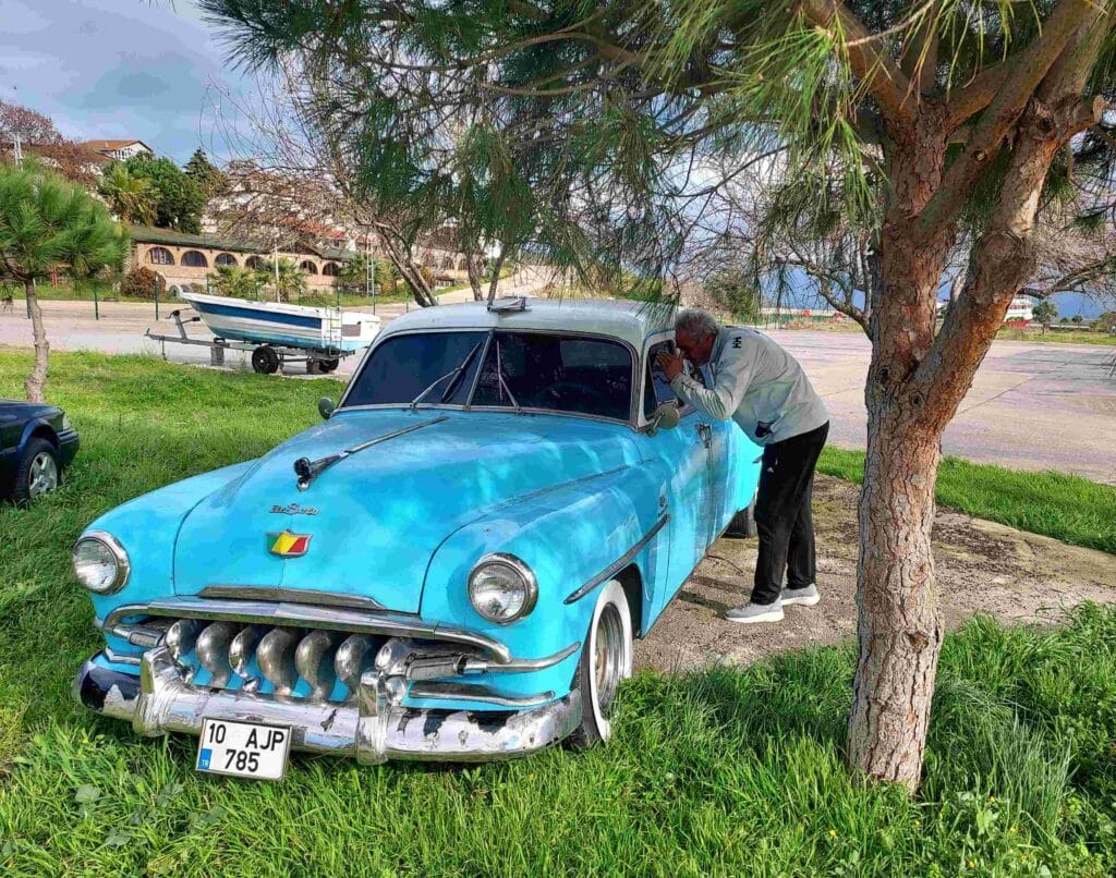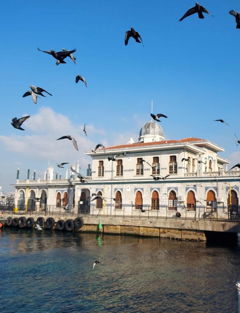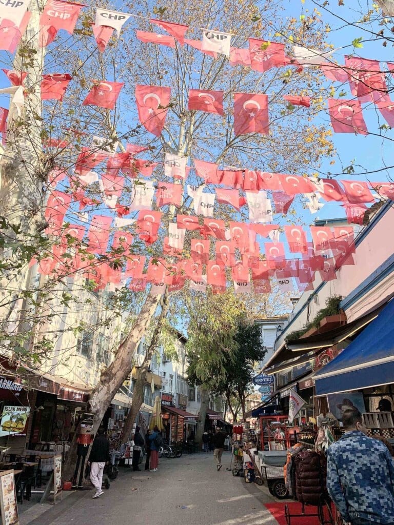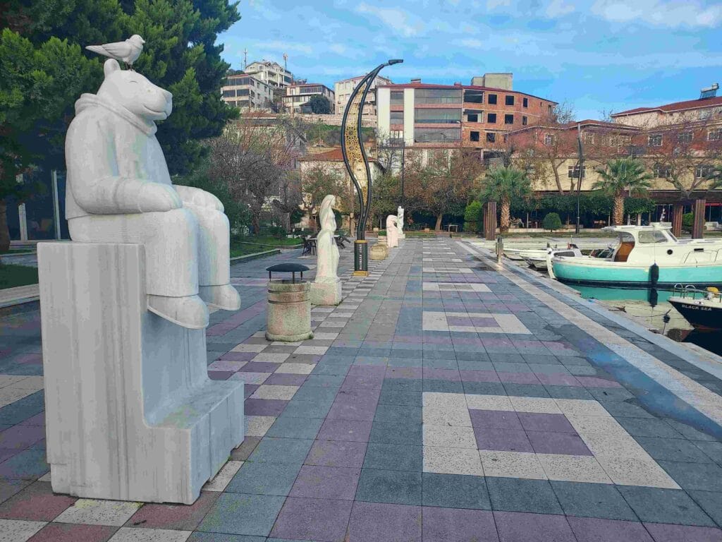 Mustafa spoke only a few words of English, but he made a gesture of drinking from a cup and said: “çay.” Ah — we recognised that word from other languages as tea. We stepped onto the fishing boat, assuming we would sit somewhere and get tea, but instead we walked up the quay and ended up in a “tea garden.” I did not know this whole phenomenon yet, but this is something important to know about Turkish culture.