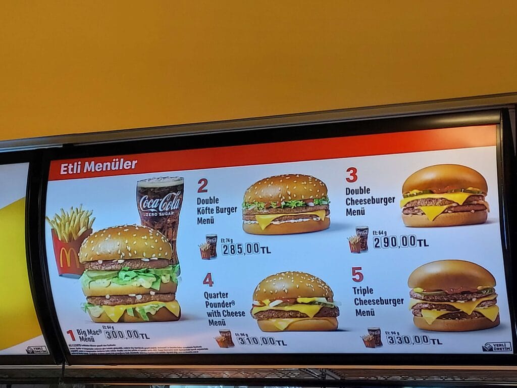 We walked through the open-air shopping centre with a little river running through it, trendy shops — and yes, McDonald’s. Of course we tried it: the Köfte Burger Menu.