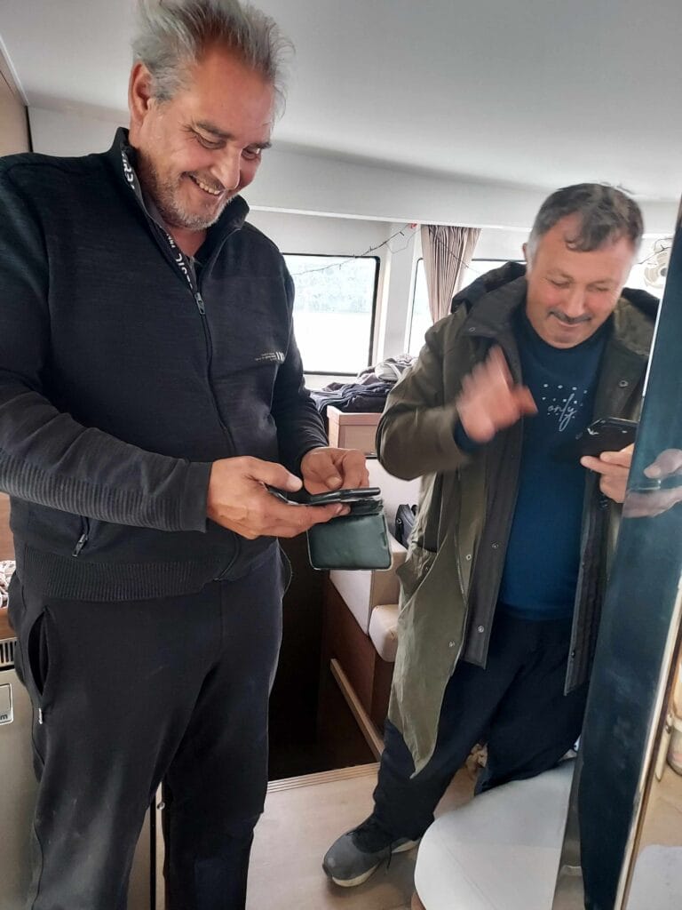We reached Esenköy during a period of heavy wind and hoped to shelter in the fishing harbour for two days. Navily said the cooperative chairman was relaxed and open to visiting boats. And indeed he was. Ibrahim greeted us warmly, found it completely logical that we were seeking shelter — but first: tea. Of course.