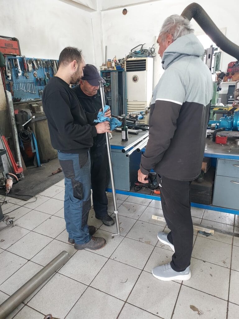 With our bikes and step, still in strong winds, and a large backpack carrying the two-meter telescopes, we set off to the welder whose workshop was 2 km outside town. Father and son immediately understood what we needed, and two days later the telescopes were ready and we could safely depart again.