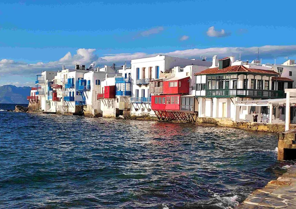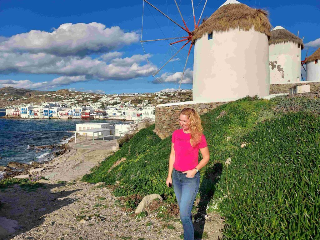 At sunset, the windmills look especially beautiful. In the video, you can also see how close they are to Little Venice, which lies just across from them.