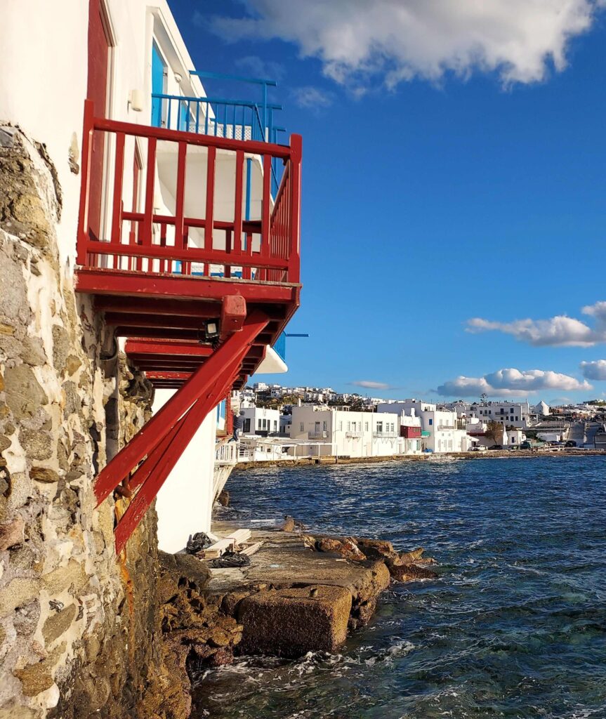 When we arrived at the harbor, we immediately saw the iconic whitewashed houses with red or blue windows and doors that the Cyclades are famous for.
