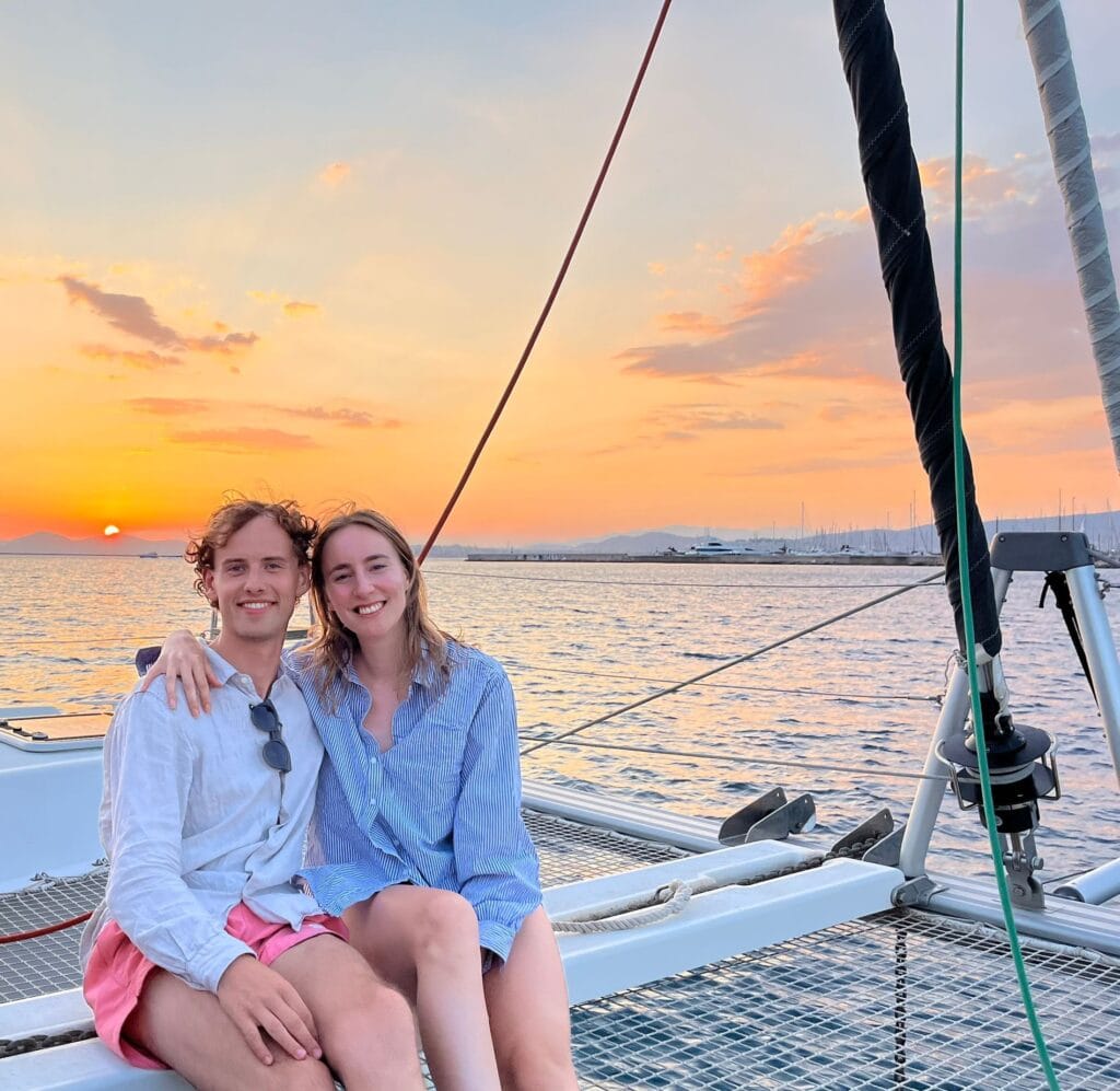Last summer, we spent a week sailing with Laura and Gilles in Greece. It was an amazing experience. Gilles and Laura immediately made us feel welcome, creating a pleasant and relaxed atmosphere. With great patience, Gilles taught us (to better) sail and explained everything about the catamaran. We also regularly cast out the fishing rod to catch some Mediterranean fish! On Horizon we lacked nothing — she’s equipped with every comfort, such as an oven, dishwasher, three spacious cabins, and the most advanced onboard computer we’ve ever seen! We sailed from Lavrion to Aegina, Hydra, Poros, Vathi and finally Athens. Every sailing day ended with an “anchor beer” and a recap of the day. It was our first time sailing on a catamaran, and it was an amazing experience — definitely worth repeating!