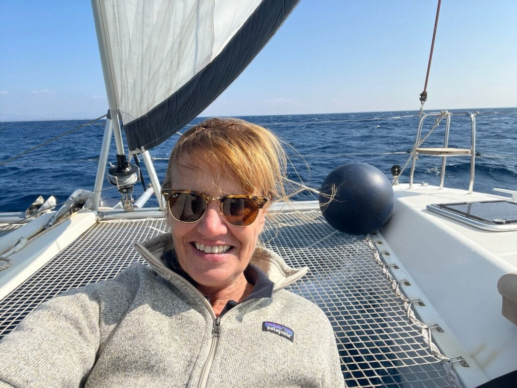 My first trip to Greece was in 1986 – and it was love at first sight. Since then, I’ve kept coming back and I always looked at the sailboats arriving and departing with a mix of admiration and longing. And now, right at the moment I retired, that dream finally came true. I was able to join Gilles and Laura on their catamaran in Greece.